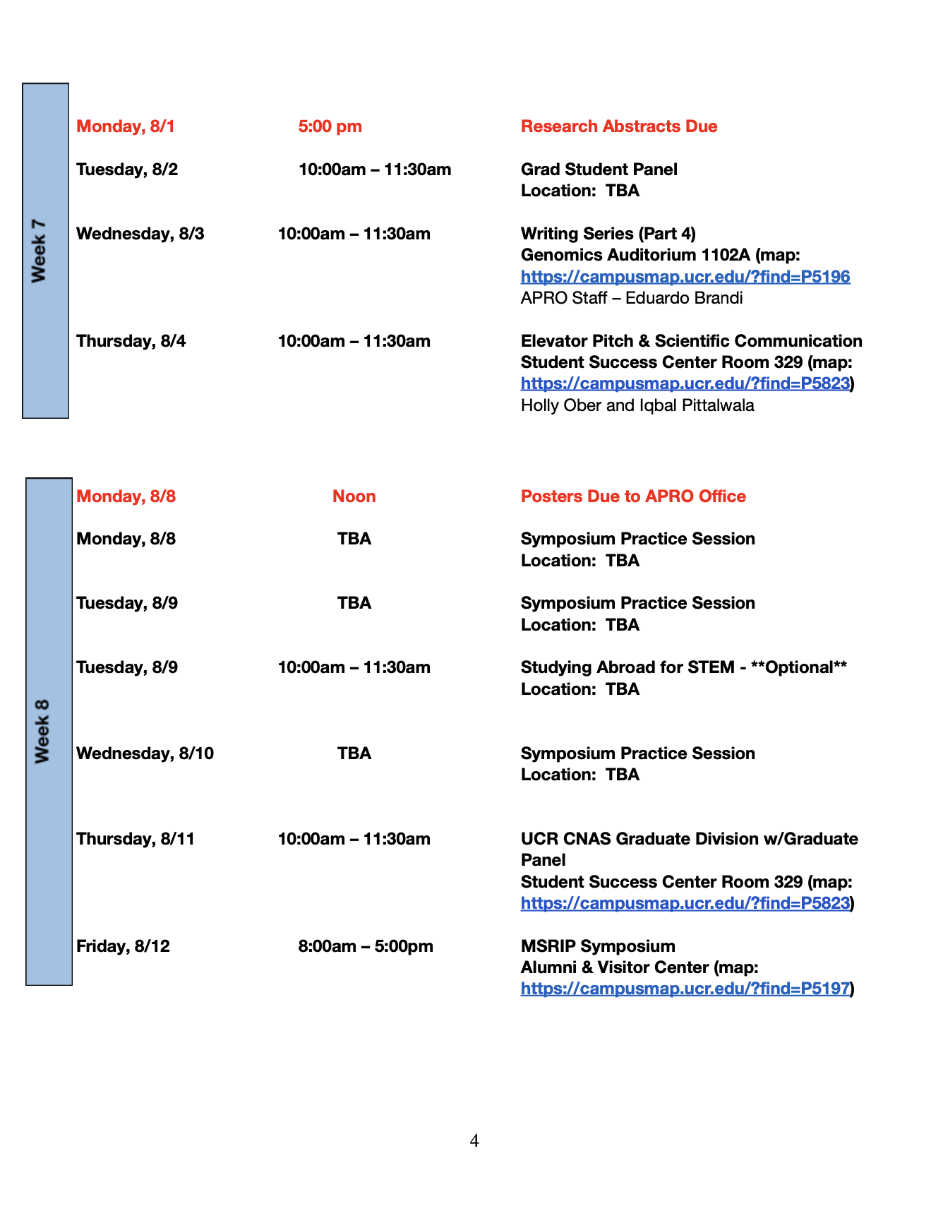 Program Timeline and Schedule