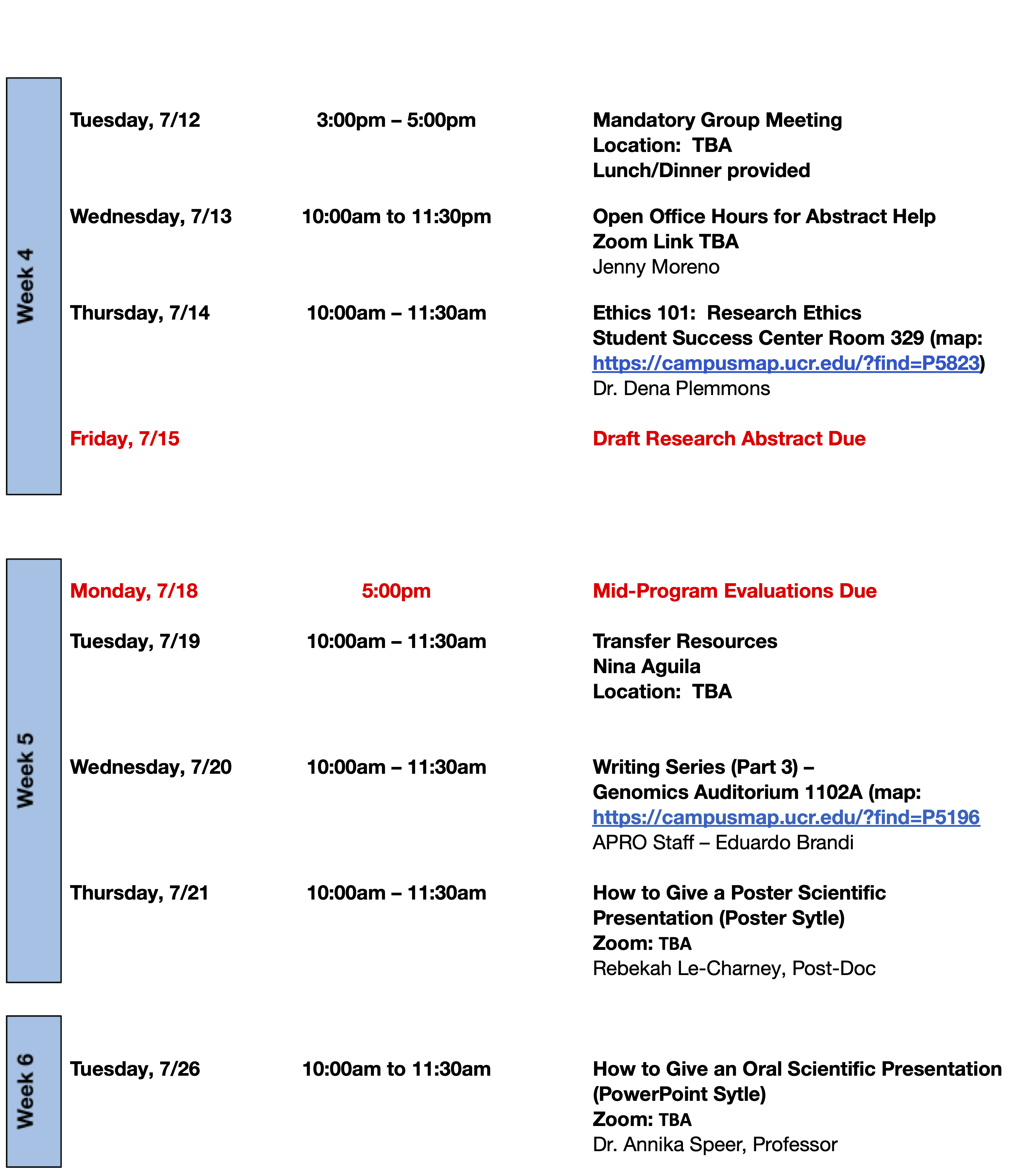 Program Timeline and Schedule